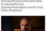 Նիկո՛լ, եթե որևէ նորմալ երկրում, կառավարության ղեկավարի գոնե մեկ սուտ կամ կեղծիք է բացահայտվում՝ կառավարությունն ու վարչապետը հրաժարական են տալիս։ Դա նշանակում է, որ հարգում են իրենց ժողովրդին, ունեն ազգային արժանապատվություն, ունեն քաղաքական պատասխանատվություն, մարդկային նկարագիր վերջապես։Մեռան քո աշխարհասփյուռ ստերն ու կեղծիքները բացահայտելով։ Ներսում բացահայտում են, դեմդ են դնում։ Դրսում պաշտոնապես բացահայտում են՝ հրապ...
