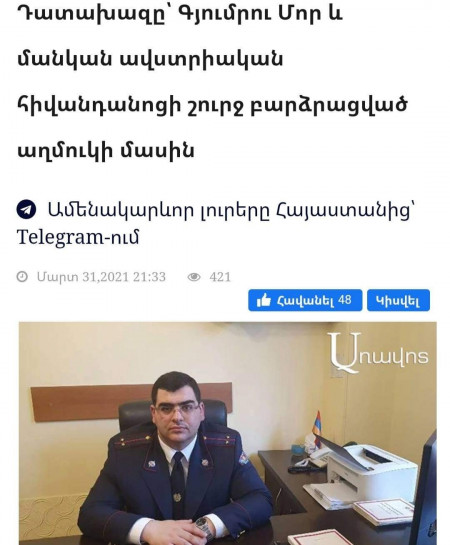 Երեկ ԶԼՄ-ներից տեղեկացա, որ Գյումրու Մոր և մանկան ավստրիական հիվանդանոցում, որը ղեկավարում է ՇՊՀ ռեկտորի ԺՊ Երվանդ Սերոբյանի որդին՝ Ժորժիկ Սերոբյանը, 2020 թվականի ընթացքում պետպատվերի շրջանակում ձևական հիվանդ երեխաների գրանցելու, խարդախություն կատարելու եղանակով առանձնապես խոշոր չափերի գումարներ՝ շուրջ 7 միլիոն 984 հազար դրամ հափշտակելու կասկածանքով քրեական գործ հարուցող դատախազ Դավիթ Մարտիրոսյանն, այն նույն դատախազն է, ով նաև որպես մեղադրող հանդես է գալիս Երվանդ Սերոբյանի և նրա երկու գործընկերների դեմ դատարանում՝ պաշտպանելով մի «տուզիկ» մեղադրանք. Սերոբյանը և նրա ընկերները մեղադրվում են պաշտոնական կեղծիքի մեջ...