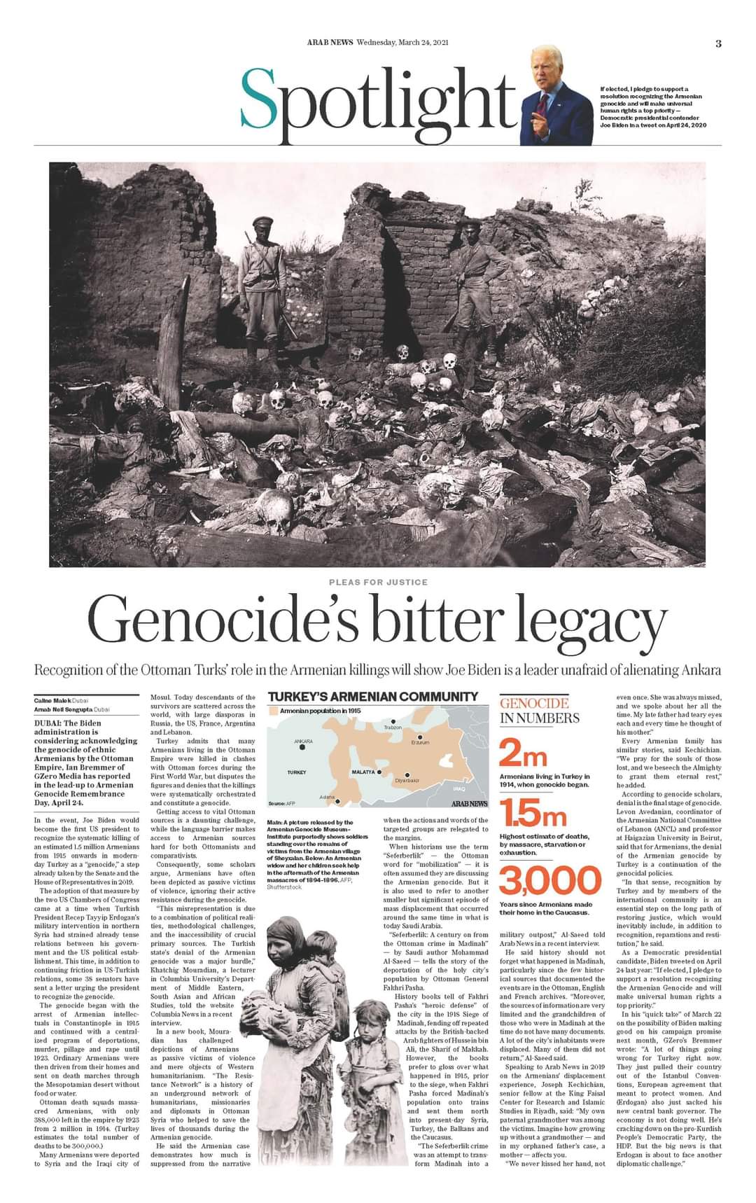 Չգիտես ինչու Հայաստանում որևէ ուշադրության չարժանացավ Սաուդյան Արաբիայի թագաժառանգ Մուհամմադ բին Սալմանի եղբորը պատկանող և այդ պետության տեսակետների անգլիալեզու խոսափող «Arab News» թերթում մոտ մեկ շաբաթ առաջ հրապարակված՝ հայոց ցեղասպանության մասին հոդվածը, որում ընդհանուր հակաթուրքական համատեքստում զուգահեռներ էին անցկացվում 1915թ․ ցեղասպանության և 1918թ․ մահմեդականների սրբազան քաղաք Մեդինայի արաբ բնակչության բռնի տեղահանության միջև։
