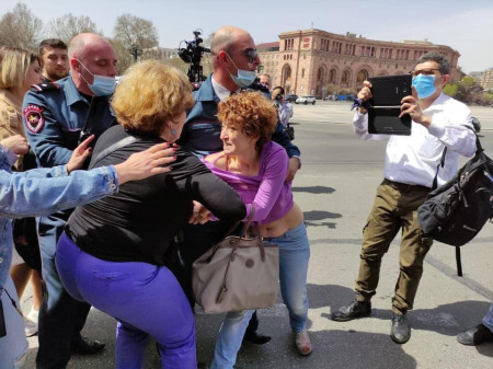 Կինը, որին ինքնամոռաց քաշքշում են ոստիկանները, Վազգեն Մանուկյանի կինն է
