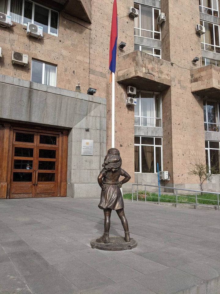 Կառավարության 3-րդ մասնաշենքի դիմաց տեղադրվել է «Անվախ աղջկա» արձանը, որի բացումն արվել է գաղտագողի (լուսանկար)