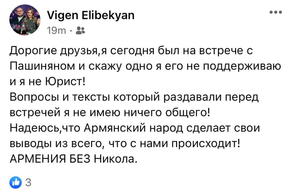 Ինձ հետ կապվեց իմ հրապարակած «ամոթի ցուցակի» 11-րդ համարը՝ Վիգեն Էլբակյանը։ Պարզվեց՝ պարոն Էլբակյանը հանդիպմանը եղել է մոտ 30-40 րոպե ու հեռացել է՝ հասկանալով, թե ինչ է այնտեղ կատարվում։