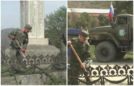 Խաղաղապահները Արցախում վերականգնում են Հայրենական մեծ պատերազմում զոհվածների հուշարձանները. Տեսանյութ