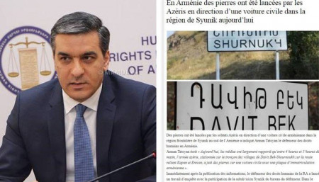 ««Nouvelles d'Arménie» պարբերականն անդրադարձ է կատարել Մարդու իրավունքների պաշտպանի այն հայտարարությանը, որը վերաբերում է Սյունիքի մարզում ադրբեջանական զինվորականների կողմից հայկական պետհամարանիշով քաղաքացիական ավտոմեքենայի ուղղությամբ քարեր նետելուն: