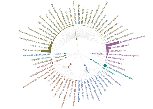 Մեկ միլիարդից ավելի չափով պարգևավճարներ բաժանվել են 8` մեծամասամբ ուժային կառույցներում։ Պարգևատրումների ամենամեծ չափը բաժին է ընկել Ոստիկանությանը՝ 9,440,069,160 դրամ, որին հաջորդում է Պետական եկամուտների կոմիտեն՝ 6,596,396,100 դրամով։ Ազգային անվտանգության ծառայությունում պարգևատրվել են 3,085,119,370 դրամի չափով, Դատական դեպարտամենտում՝ 2,148,554,350 դրամի չափով, Արտակարգ իրավիճակների նախարարությունում և փրկարարար ծառայությունում միասին պարգևատրվել են 2,110,431,950 դրամի չափով։ «Միլիարդատերների» ցանկում է նաև Վարչապետի աշխատակազմը՝ 1,634,215,530 դրամ պարգևատրումների չափով։ Ցանկը եզրափակում են Քննչական կոմիտեն՝ 1,398,243,200 և ԱՆ Քրեակատարողական ծառայությունը՝ 1,171,096,310 դրամի չափերով։