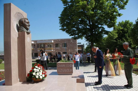 Այսօր՝ մայիսի 22-ին, ԱՀ ԱԺ նախագահ Արթուր Թովմասյանը ԱՀ անվտանգության խորհրդի քարտուղար Վիտալի Բալասանյանի և պաշտոնատար այլ անձանց ուղեկցությամբ մասնակցել է Ստեփանակերտի հայ-ֆրանսիական բարեկամության պուրակում կառուցված ֆրանսահայ նշանավոր երգիչ, շանսոնյե, երգահան, բանաստեղծ, գրող, կինոդերասան և հասարակական գործիչ Շառլ Ազնավուրի կիսանդրու բացման արարողությանը և ծաղիկներ խոնարհել մեծ հայի հիշատակը հավերժացնող կիսանդրու պատվանդանին։