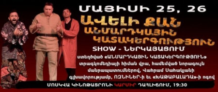 Մայիսի 25-ին և 26-ին Մոսկվա կինոթատրոնում Վահրամ Սահակյանը կներկայացնի իր նոր «Ավելի քան անմարդկային կատակերգություն» ներկայացումը։