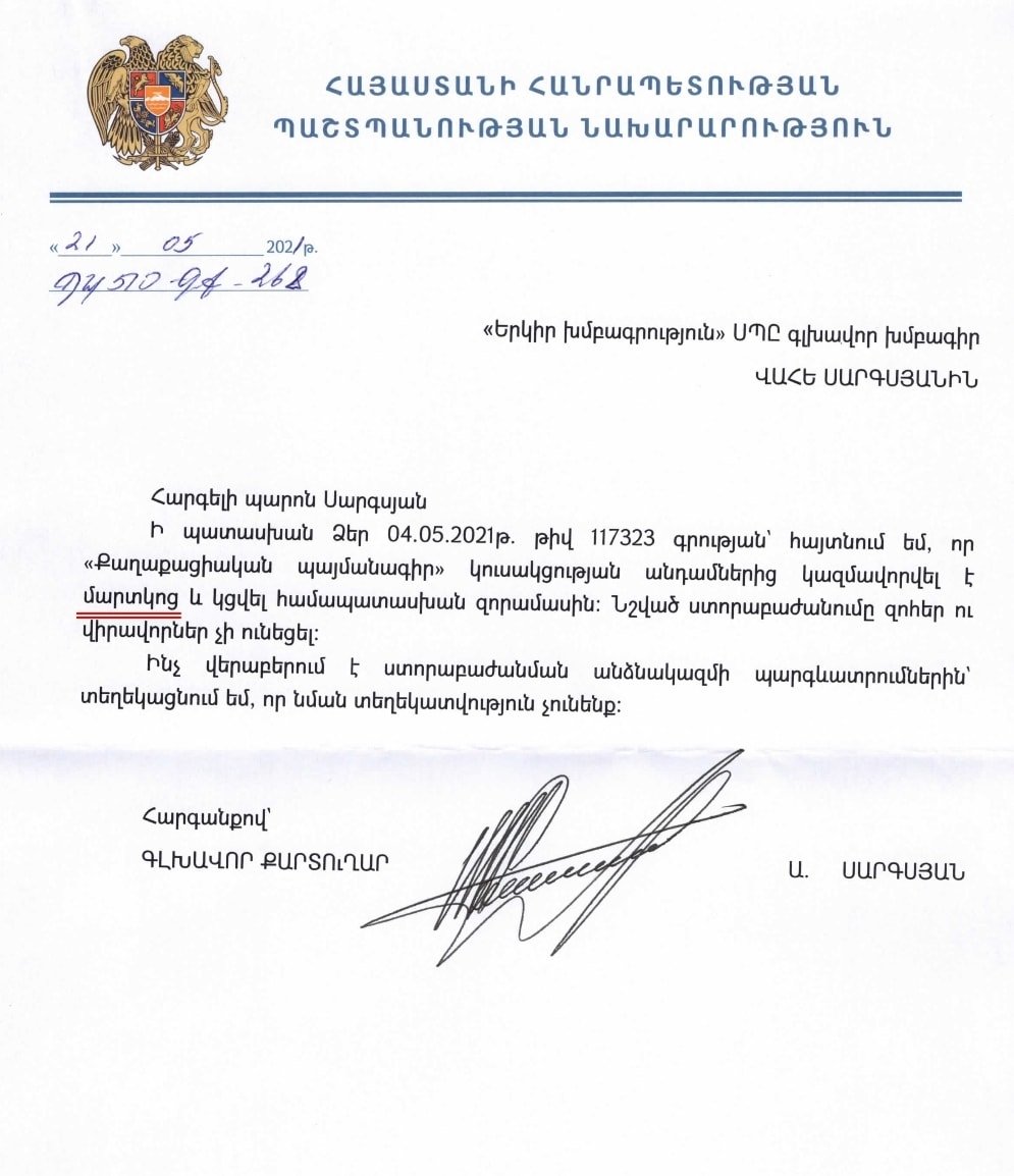 Հիմա հարց ՊՆ-ին` այս ուսապարկերից ի՞նչ «մարտկոց» եք կազմել։ Ձեռք ե՞ք առնում, արա։ Այն, որ սրանք որևէ մարտական գործողության կամ մարտական հերթապահության անգամ չեն մասնակցել, գիտենք բոլորս։ Բայց բռնեք սրանց անունը դնեք մարտկո՞ց: Արա, հասկանում ե՞ք գոնե, որ այսպես դուք վիրավորում եք մեր բանկի հրետանավորներին, այն տղերքին, որոնք իրենց գործի վարպետն են, որոնք իրենց փայլուն դրսևորեցին անգամ այս վերջին, ձեր իսկ Սասունի ասած «անհասկանալի» պատերազմում։