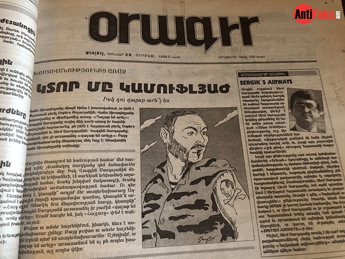 Սակայն Նիկոլ Փաշինյանը մի նուրբ դրվագ է մոռանում: 1990-ականների վերջից Փաշինյանը իր թերթով առանձնակի ատելություն և թշնամանք էր գեներացնում Վազգեն Սարգսյանի, Երկրապահ կամավորական միության, Արցախի նկատմամբ՝ ամեն տեսակ զազրելի և անպարկեշտ ծաղրանկարներով լցնելով իր թերթի էջերը: «Օրագիր» օրաթերթից մի քանի հետաքրքիր դրվագների կարող եք ծանոթանալ այստեղ:
