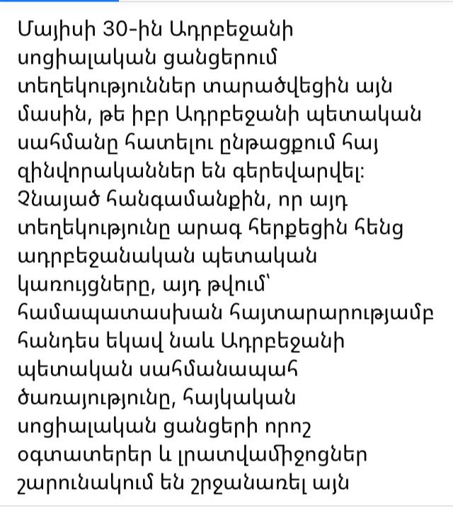 Տպավորություն է, որ ՀՀ ՊՆ-ն լուրերն իմանում է սոցիալական ցանցերից, իսկ տվյալ պարագայում ադրբեջանական սոցցանցերից և Ադրբեջանի սահմանապահ պետական ծառայությունից: