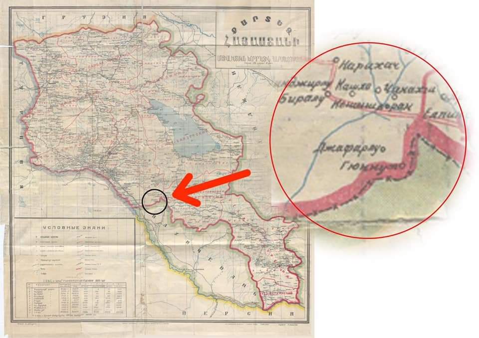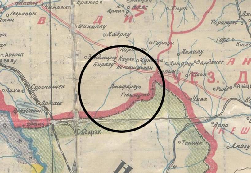 Անգամ, օրինակ, ՀԽՍՀ 1926թ. քարտեզում գյուղը կազմում է Հայաստանի մաս (քարտեզը հրապարակվում է՝ որպես սույն հայտարարության հավելված): Տարիների ընթացքում է գյուղը բաժանվել երկու մասի թյուրքական Ջաֆարլու տոհմի բնակեցման հետևանքով և ստացել Ջաֆարլու և Գյունութ անվանումները: