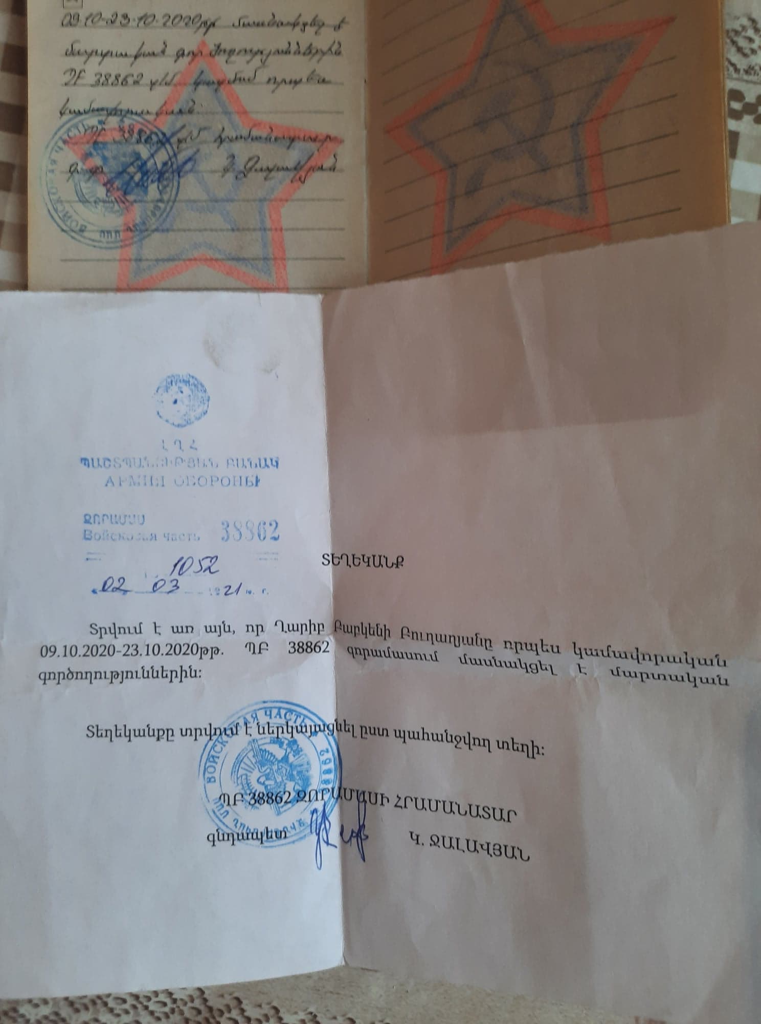 «Բայց ցավազրկող ու հանգստացնող հաբերով ինչքա՞ն կարող եմ ձգել: Օրերս այնքան վատացա, որ ստիպված դիմեցի բժիշկներին: Սկզբում եղա Էջմիածնի հիվանդանոցում, հետո՝ «Էրեբունի»-ում: Երկուսում էլ ներկայացրի զինգրքույկս, որտեղ մանրամասն գրված է, թե որտեղ, ինչ ժամկետում եւ ում հրամանատարության տակ եմ ծառայել: Բայց զարմանքից քարացա, երբ երկու հիվանդանոցներում էլ ասացին, թե զինգրքույկս ժամկետն անց է: Ասում եմ՝ հարգելիս, սա զինգրքույկ է, ամեն անգամ չես տանի զորամասի հրամանատարին տաս, որ գրի՝ մասնակցել է պատերազմին: Կամ՝ հո խոտ բարձելու տեղեկանք չի՞, որ օրական գնամ վերցնեմ… Իսկ իրականությունն այն էր, որ չցանկացան ընդունել պետպատվերով, բայց եթե կարողանայի վճարել, կսկսեին բուժումս»: