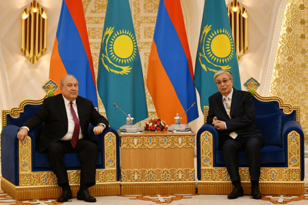 Աշխատանքային այցով Նուր-Սուլթանում գտնվող՝ Հայաստանի Հանրապետության նախագահ Արմեն Սարգսյանը հանդիպել է Ղազախստանի Հանրապետության նախագահ Կասիմ-Ժոմարտ Տոկաևի հետ: Հանդիպմանը մասնակցել են Ղազախստանի փոխվարչապետ, արտաքին գործերի նախարար Մուխթար Թլեուբերդին, առևտրի և ինտեգրման նախարար Բախիտ Սուլթանովը, պաշտոնատար այլ անձինք: