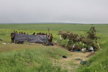 Իսկ նկարում մեր տղերքն են, սահման են պահում, ու իրենց ձեռքերով պատրաստած վրաններում են մնում, ցրտին, անձրևին։