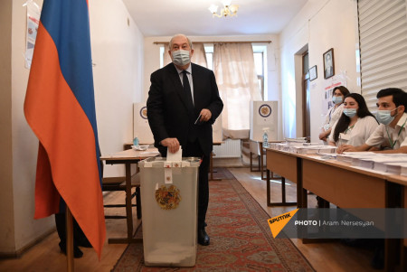 Հայաստանի Հանրապետության նախագահ Արմեն Սարգսյանը քվեարկեց ԱԺ արտահերթ ընտրություններում։ Նա իր ընտրությունը կատարեց Բաղրամյան պողոտա 3 հասցեում գտնվող Գրողների միության շենքում տեակայված ընտրատեղամասում։ Սարգսյանը դիմակով էր, սակայն երևում էր, որ լավ տրամադրություն ուներ։