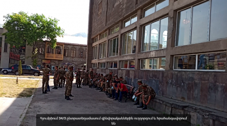 Գյումրիում 34/3 ընտրատեղամասում զինվորականներին ուղղորդում և հրահանգավորում են: