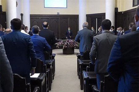 Մեկնարկել է կառավարության նիստը։ Մինչ նիստի մեկնարկը վարչապետի աշխատակազմի արարողակարգի պատասխանատու Վահե Հակոբյանը գործադիրի անդամներին կոչ արեց Նիկոլ Փաշինյանին հոտնկայս դիմավորել։