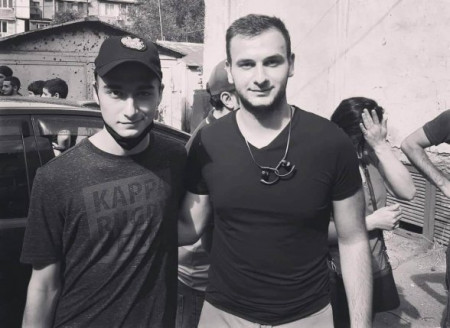 Այս լուսանկարում Աբգարս ընկերոջ՝ Նարեկի հետ է, զինկոմիսարիատի մոտ։
