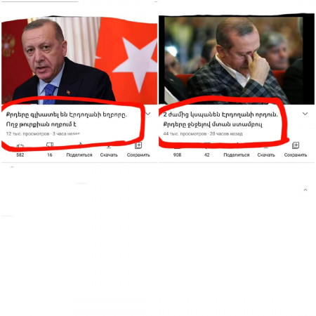 Մի քանի օր առաջ Նիկոլ Անհողին սպասարկող YouTube-յան ալիքներից մեկը տեսանյութ էր հրապարակել` «Քրդերը գլխատել են Էրդողանի եղբորը.ողջ Թուրքիան ողբում է» վերնագրով... Հետո արդեն պարզվեց, նույն քրդերը գլխատել են Էրդողանի որդուն ու մտել են Ստամբուլ...