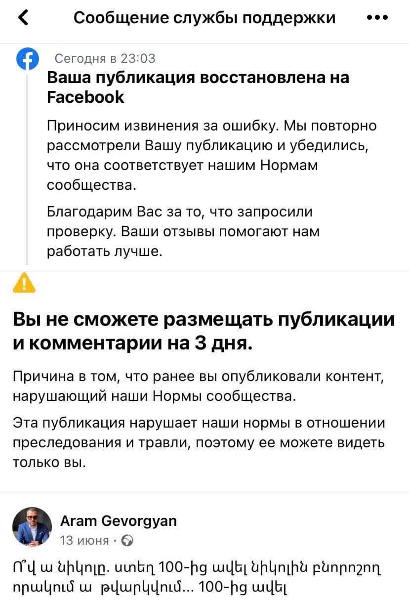 Ոնց տեսնում եք՝ ֆեյսբուքն էլ ընդունեց, որ նիկոլը մարդ չի, ու ոնց փակել էին, տենց էլ բացեցին։