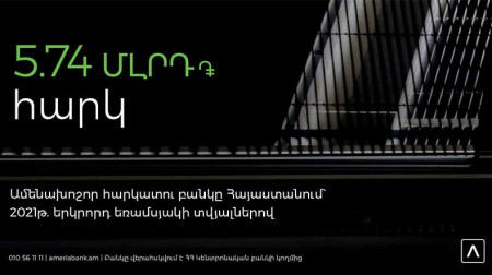 Ամերիաբանկ. Հայաստանի առաջատար հարկատու բանկը` 2021 թ. երկրորդ եռամսյակի տվյալներով