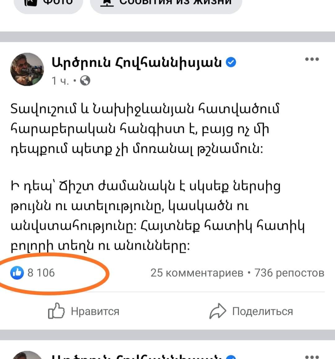 Խնդիրը նրան «լայքող» մարդիկ են, ովքեր սեփական լայքերով «ողջ» են պահում այդ ստի ու կեղծիքի կրակը, սնում այն, ցույց տալիս, որ պատրաստ են հերթական անգամ խաբվել, որ ուզում են խաբված լինել, և որ «հավի հիշողություն» ունեն ու ոչ մի ողբերգությունից դաս չեն քաղում։