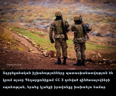 Ադրբեջանական իշխանությունները գործում են միջազգային կանոնների բացահայտ խախտումներով և պատասխանատվություն են կրում Գեղարքունիքում այսօր ՀՀ 3 զոհված զինծառայողներին սպանելու, նրանց կյանքի իրավունքը խախտելու համար, վիրավորում ստացած զինծառայողների առողջությանը վնաս պատճառելու համար: