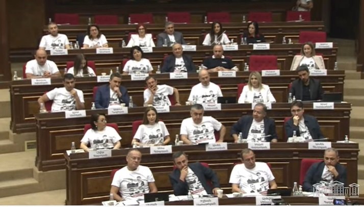 «Հայաստան» դաշինքի պատգամավորները՝ Սյունիքի ազատազրկված համայնքապետերի նկարներով շապիկներով