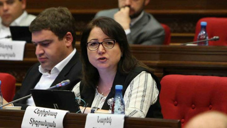 Արձագանքելով Արծվիկ Մինասյանի ելույթի այն հատվածին, որտեղ վերջինս նշեց, որ այսօր Ջորջ Սորոսի ծննդյան օրն է՝ Հերիքնազ Տիգրանյանը հպարտությամբ նշեց, որ երբեք չի ամաչի ասել հասարակական կազմակերպությունում իր գործունեության մասին: