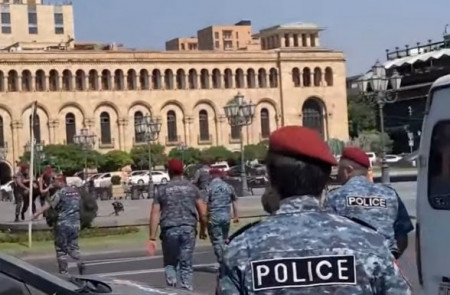 NEWS.am-ի թղթակիցը հաղորդում է, որ երիտասարդը շան հետ զբոսնում էր Հանրապետության հրապարակում, երբ շրջվելով դեպի Կառավարության շենք՝ մի քանի անգամ բացականչեց «Նիկոլ, հեռացիր»։ Ոստիկանության կարմիր բերետավորներն անմիջապես վազեցին դեպի երիտասարդը, թեեւերից ծալելով նրան նստեցրին ոստիկանանական մեքենան եւ տարան։ Թե որն էր երիտասարդին բերման ենթարկելու պատճառը, ոստիկանները հրաժարվեցին մեր թղթակցին ասել։