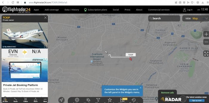 «Քիչ առաջ Երևանում վայրէջք է կատարել թուրքական մասնավոր ինքնաթիռ»: