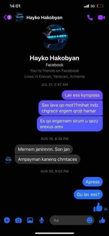 Երգչուհի Սոնա Շահգելդյանը ֆեյսբուքյան իր էջի սթորի բաժնում հրապարակել է իր և Հայկոյի նամակագրությունից մի հատված, որը տեղի է ունեցել հուլիս-օգոստոս ամիսներին: