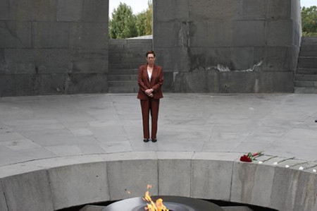 Անն Լույոն ծաղկեպսակ է դրել Հայոց ցեղասպանության զոհերի հիշատակը հավերժացնող հուշակոթողին: Հյուրերը ծաղիկներ են դրել անմար կրակի մոտ և մեկ րոպե լռությամբ հարգել Հայոց ցեղասպանության անմեղ զոհերի հիշատակը: