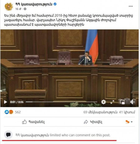 Նկատենք, որ «ՀՀ կառավարություն didn't limit who can ծափ տալ on this post»