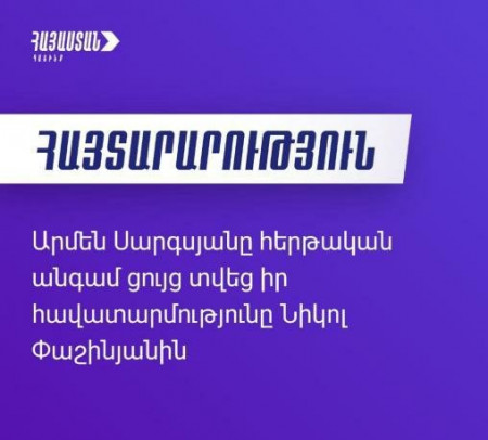 Արմեն Սարգսյանը հերթական անգամ ցույց տվեց իր հավատարմությունը Նիկոլ Փաշինյանին. «Հայաստան»