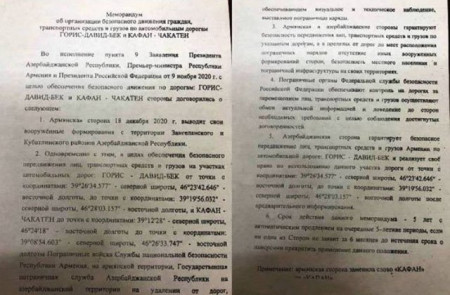 Շրջանառվում է նաև, որ հուշագիրը, 2020-ի դեկտեմբերի 17-ին ստարագրել են այդ օրերին ՀՀ ՊՆ նախարար Վաղարշակ Հարությունյանը, Ռուսաստանի և ադրբեջանի ՊՆ նախարարները։