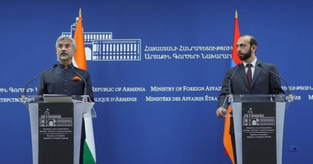 Ձախ կողմում դիվանագետ է՝ Հնդկաստանի ԱԳ նախարար Սուբրամանյամ Ջայշանկարին։ Աջ կողմում դիլետանտ է՝ ՀՀ ԱԳ նախարար միրզոյանը։