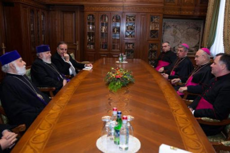 Ողջունելով Քույր Եկեղեցու ներկայացուցիչների այցը հայոց հոգևոր կենտրոն՝ Նորին Սրբությունը հույս հայտնեց, որ Սուրբ Աթոռի դիվանագիտական մշտական ներկայացուցչության բացումը Երևանում Վատիկանի և Մայր Աթոռի միջև համագործակցության նոր հնարավորություններ կընձեռնի։ Հայոց Հայրապետը հաստատեց, որ Մայր Աթոռի և Վատիկանի միջև ձևավորվել են ջերմ և եղբայրական հարաբերություններ, որոնց վառ ապացույցներն են Հռոմի Սրբազան Քահանայապետերի՝ Հովհաննես-Պողոս Երկրորդի և Ֆրանցիսկոս Պապերի այցելությունները Հայաստան և Մայր Աթոռ Սուրբ էջմիածին, ինչպես նաև Սուրբ Աթոռում Հայոց ցեղասպանության 100-ամյակի առիթով կազմակերպված միջոցառումն ու Սուրբ Գրիգոր Նարեկացուն տիեզերական վարդապետ հռչակելը։ Վեհափառ Հայրապետն ընդգծեց, որ Մայր Աթոռի ներկայացուցչությունը Վատիկանում ևս նպաստում է երկու եկեղեցիների բարեկամական կապերի առավել զորացմանն ու խորացմանը։