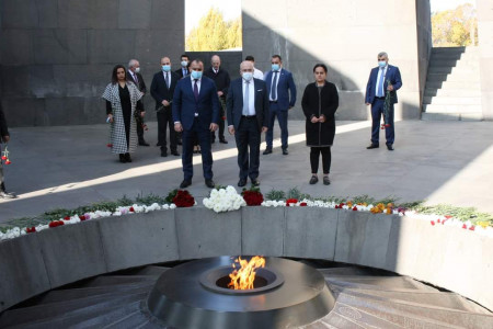 Պաշտոնական այցով Հայաստան ժամանած Վրաստանի Սահմանադրական դատարանի նախագահ Մերաբ Թուրավայի գլխավորած պատվիրակությունը ՀՀ Սահմանադրական դատարանի նախագահ Արման Դիլանյանի ուղեկցությամբ այցելեց Հայոց ցեղասպանության հուշահամալիր: