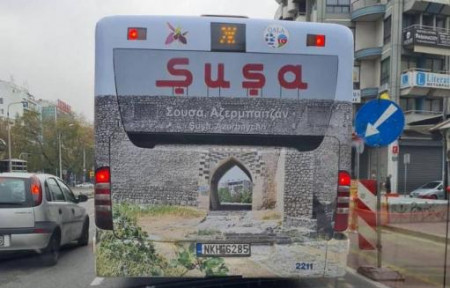 Հունաստանի Սալոնիկ քաղաքում քաղաքային ավտոբուսների վրա տեղադրվել է Շուշի քաղաքի պատկերով գովազդ՝ ադրբեջանական տարբերակով, «Շուշա» գրառմամբ։ Այն հարուցել է հայկական համայնքի զայրութը, նրանք պահանջել են հեռացնել այս գովազդը։