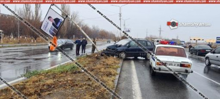 Արմավիրում Opel-ը բախվել է էլեկտրասյանը, տապալել Մեծամորի քաղաքապետի թեկնածուի գովազդային պաստառը