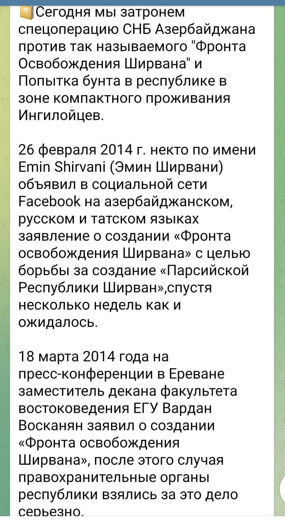 Բաքվի բռնապետի քարոզչամեքենայի տելեգրամյան ալիքներից մեկը միայն վերջերս բացահայտեց, թե ինչպիսի մեծ խնդիրներ է ունեցել Ադրբեջան կոչվող արհեստածին կազմավորումը՝ դրա զբաղեցրած տարածքում անկախ իրենց կամքից ներառված տեղաբնիկ կովկասյան պարսիկների (թաթերի) ազատագրական շարժման հետ։