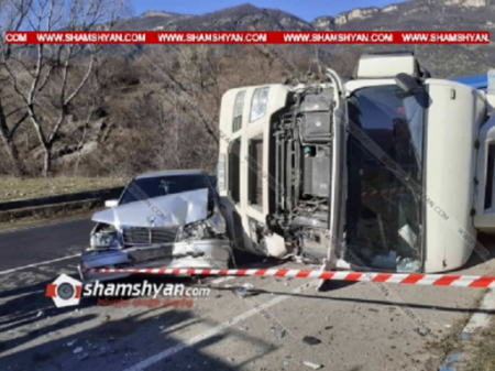 Տավուշի մարզում բախվել են մարդատարն ու բեռնատարը. վերջինս կողաշրջվել է, կա վիրավոր