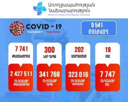 Կորոնավիրուսով վարակման 300 և մահվան 19 նոր դեպք