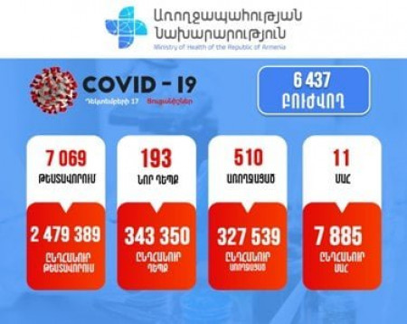 Հայաստանում հաստատվել է կորոնավիրուսով վարակվելու 193 նոր դեպք. մահացել է 14 քաղաքացի