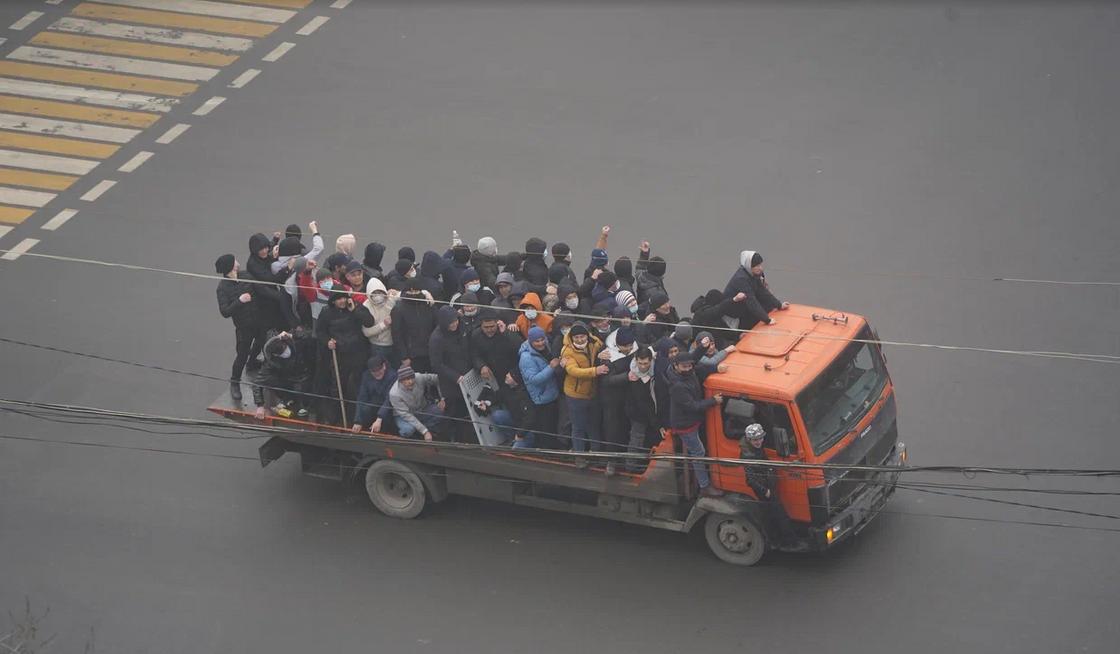 Իսկ մինչ այդ Ալմաթիի կենտրոնում կրկին ցուցարարներ են հավաքվում։ Սոցցանցերում հրապարակված տեսանյութերում երևում են մի խումբ երիտասարդներ, որոնցից մեկի ձեռքին հատուկ ջոկատի վահան է, որը, ամենայն հավանականությամբ, ցուցարարները գրավել են երեկվա բախումների ժամանակ։ Երթի մասնակիցներից ոմանք օգտագործում են հատուկ մեքենաներ, որոնք կարող են պատկանել նաև ուժայիններին։