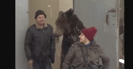 Արջը ռուսների հետ նույն բնակարանում է ապրում և օգնում է հաշմանդամային սայլակ հրել. Տեսանյութ