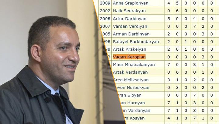 տոկոսով՝ 17,96% (համեմատության համար առաջին տեղը զբաղեցնում է Արթուր Բարխուդարյանը՝ 93,45%).