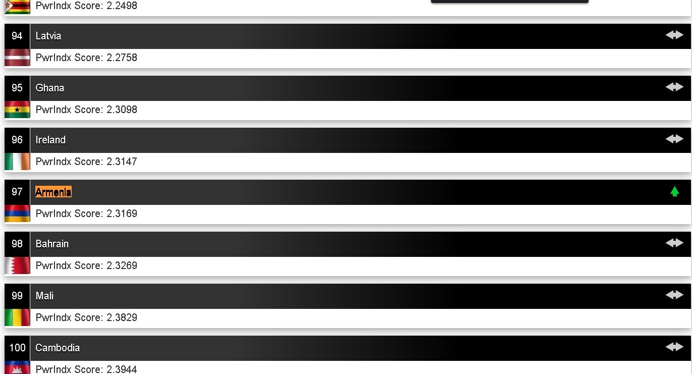 Ադրբեջանն այս ցուցակում զբաղեցրել է 63-րդ տեղը 138 երկրների շարքում, ադրբեջանական բանակը գտնվում էր Խորվաթիայի և Ղազախստանի բանակների միջև։