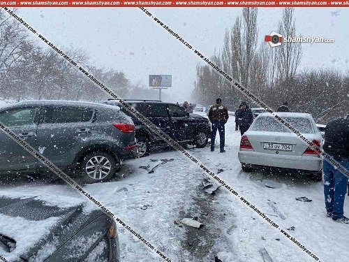 Երևան-Սևան ճանապարհի մերկասառույցը դարձել է 30-ից ավելի ավտոմեքենաների վթարի պատճառ. Լուսանկար
